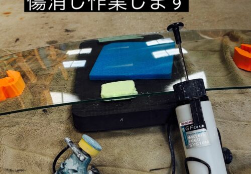 ガラスを磨くのには高い技術が必要とされます。一般的なお店ではほとんど行なうことができない施工で、ガラス屋さんでも磨くことは難しいとされています。当店ではガラスを磨き、ガラスのウロコ取りやワイパーキズ取りなどの施工をを行なっております。